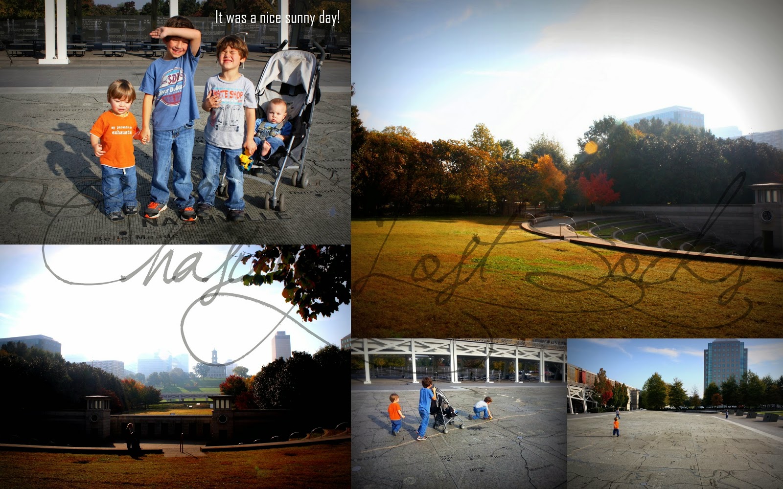 Bicentennial Capital Mall State Park. This is located a few blocks away from the strip and is free to visit. It is BEAUTIFUL! There are large grassy areas with lots of room for little legs to run around. As you walk through the trees you can learn about the history of Tennessee and even play in the fountain areas (we did not do this as it was a little chilly, and we didn't have extra clothes/shoes with us) and on the giant map of the State.